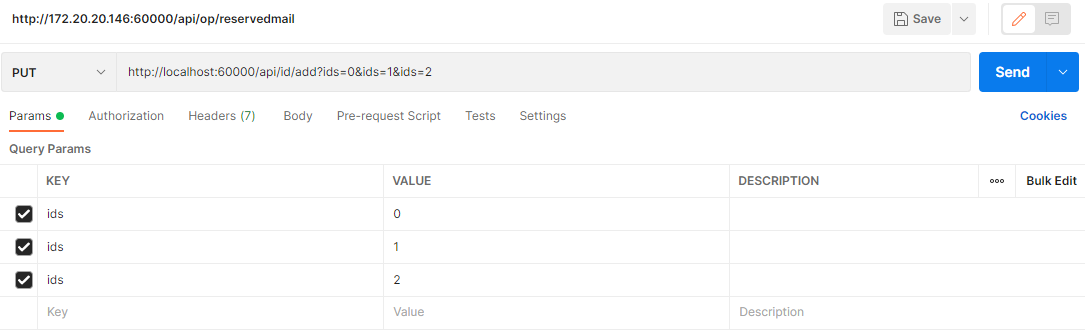 | [Route("add")] [HttpPut] public async Task<JsonResult> Add([FromQuery] int[] array_ids) { return new JsonResult(""); } |
